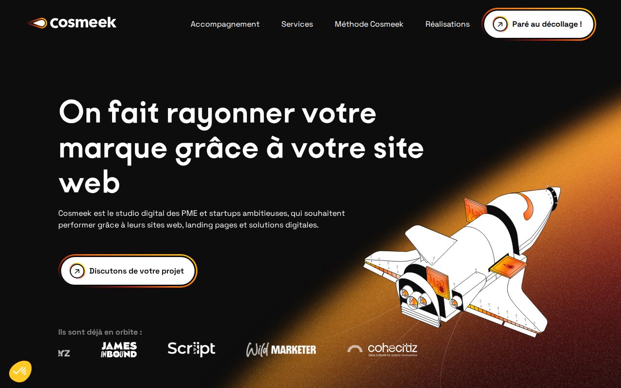 Cosmeek is a French digital studio targeting ambitious SMEs and startups seeking to grow through websites, landing pages, and digital solutions. The studio follows a structured three-phase methodology covering strategy and brand design, development and integration, and ongoing performance optimisation. Services span branding, UX/UI design, copywriting, SEO, automation, and CRO. Cosmeek positions itself as an alternative to large agencies, offering expert-level output at accessible price points. The team includes project managers, brand designers, UX/UI designers, copywriters, integrators, and data specialists working collaboratively on each client project.