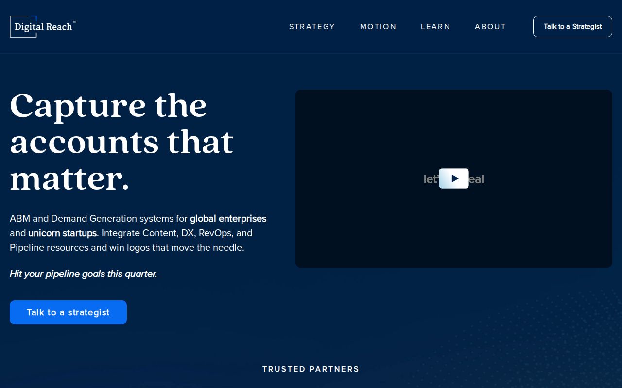 Digital Reach Agency is a B2B growth agency specializing in Account-Based Marketing and Demand Generation for enterprise organizations and high-growth startups. The agency delivers integrated GTM systems spanning brand strategy, digital experience, revenue operations, and pipeline generation. Its service model connects content, creative and UX, web development, marketing operations, CRM, data attribution, business intelligence, paid media, SEO, email nurture, and content syndication into cohesive programs. Digital Reach supports multiple go-to-market motions—ABM, demand generation, and product-led growth—and positions itself as an embedded extension of client marketing and sales teams focused on connecting marketing investment to measurable revenue impact.