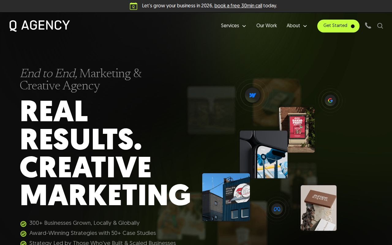 Q Agency is a Western Sydney-based end-to-end creative marketing agency serving over 300 businesses locally and globally. The agency offers a broad range of services spanning performance marketing, SEO, paid advertising, social media, branding, website design and development, and custom technology solutions. Founded by entrepreneurs with hands-on experience in e-commerce, hospitality, and international franchises, Q Agency positions itself as a growth partner operating across strategy, creative, and execution. The agency holds finalist recognition at the Australian Web Awards 2025 and maintains a no lock-in contract model. Notable client work includes seed funding campaigns, e-commerce transformation, SEO growth, and franchise rebrands across diverse industries.