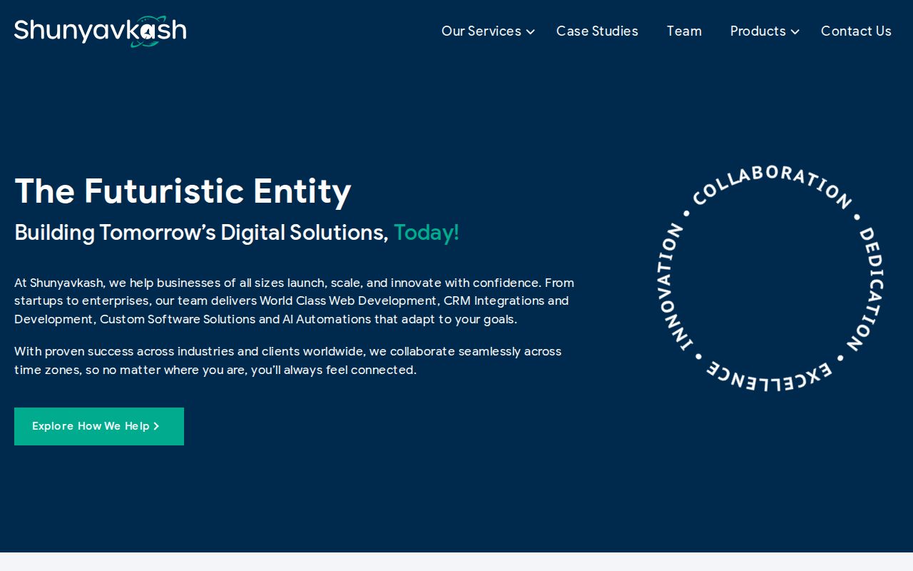 Shunyavkash is a digital solutions agency serving businesses ranging from startups to enterprises. The agency delivers custom software development, HubSpot CMS and CRM development, Webflow website design, MVP development, and AI automation services. It holds certifications in Webflow and HubSpot and maintains partnership status with both platforms. Shunyavkash operates across multiple industries including SaaS, real estate, healthcare, finance, education, logistics, and professional services. The team collaborates across time zones and reports serving 33+ clients worldwide. Notable outcomes cited for one client include a 10% revenue growth, 15% conversion increase, and 80% reduction in billing-related support tickets.